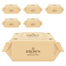 브라운 오리지널 플러스 도톰한 물티슈 엠보싱 저자극 휴대캡형, 55g, 20매, 5개