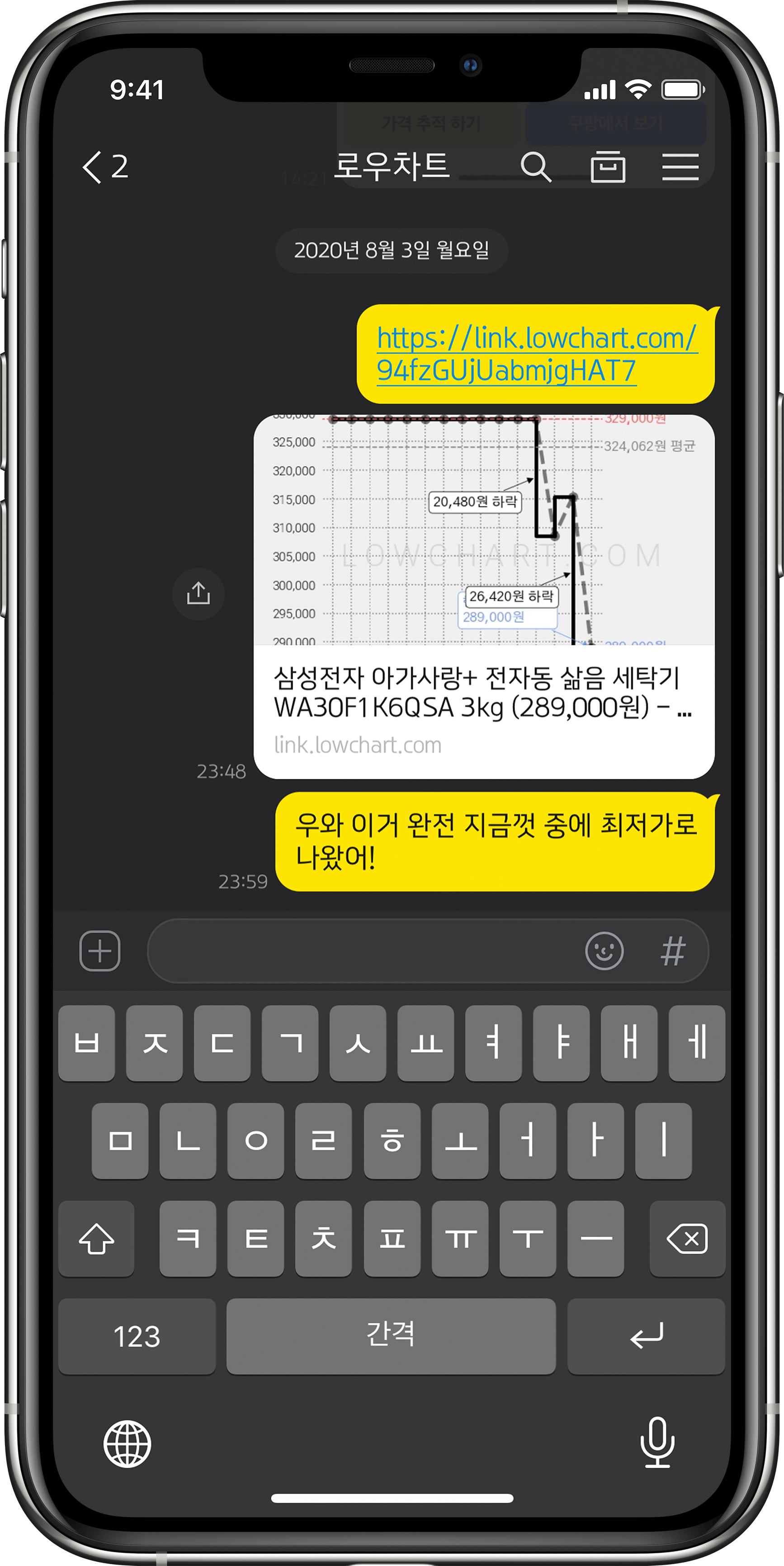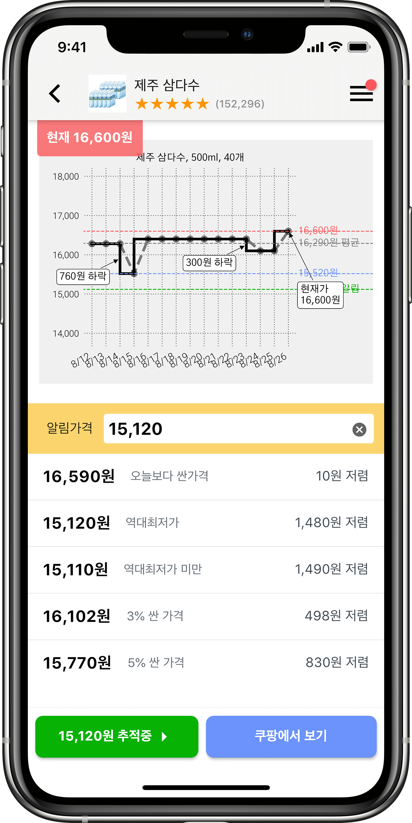 가격 변동 차트로 확인하고, 목표가 알림을 설정해두세요.